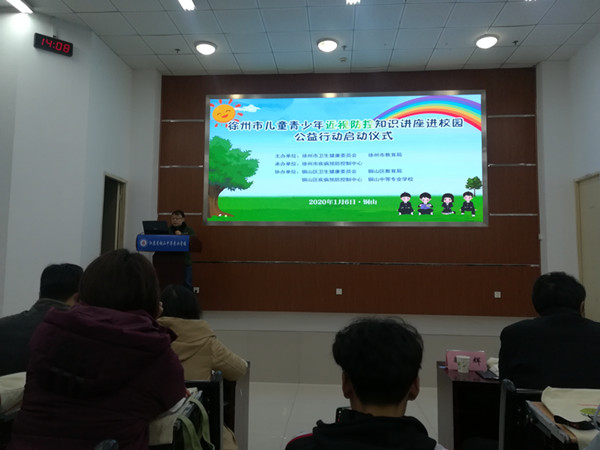为全面推进徐州市近视防控工作,提升全市学生、家长、教师等人群科学用眼和预防近视技能,1月6日,由徐州市卫生健康委员会、徐州市教育局共同主办,徐州市疾病预防控制中心承办的“徐州市儿童青少年近视防控知识讲座进校园公益行动”启动仪式在铜山中等专业学校举行。市卫生健康委疾控处处长魏哲辉、市教育局体卫艺处副处长杜文娟、市疾病预防控制中心副主任许继民,市中小学生保健所所长张兆成等领导出席启动仪式。各县(市、区)教育局、疾控中心相关领导,宣讲团受聘专家代表,学生、家长与老师代表共计300余人参加活动。