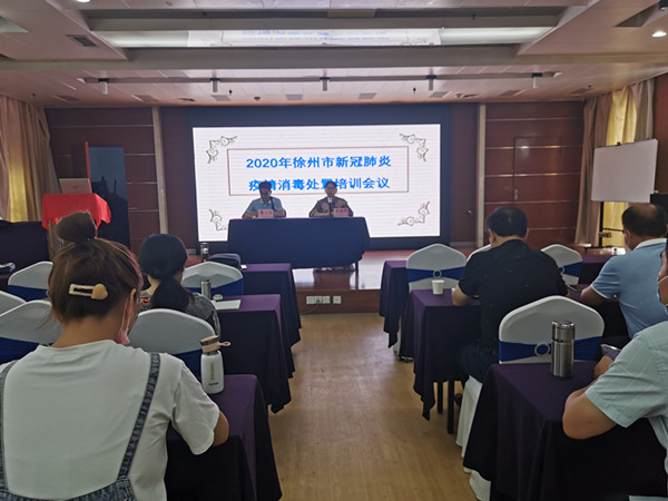 常主任指出,在前一阶段新型冠状肺炎疫情处置工作中,全市消毒人员不辞辛劳,迎难而上,在病例的处置、隔离点消杀指导、个人防护指导等疫情防控各方面发挥了重要作用;经过此次疫情,对全体人员是一个锻炼的好机会,提升了自身专业素养,锤炼不怕苦不怕累的品格;同时,在前期的疫情处置中,也暴露出了一些不足,希望大家再接再厉,早日战胜疫情。徐书记结合在疫情爆发以来消毒处理和昆山处置入境人员的经验,就新冠肺炎高危人员消毒隔离防护工作进行了深入浅出的讲解;葛科长对前一阶段消毒处置工作进行了总结,指出存在的不足;消媒科其他人员对常用个人防护用品的鉴别和使用、医学集中观察隔离点消毒技术、医疗机构消毒质量卫生学检测要求、2019年徐州市消媒工作进行了总结以及对2020年消媒工作进行布置。最后由沛县疾控中心和泉山区疾控中心就疫情期间消毒处置工作做了交流汇报。