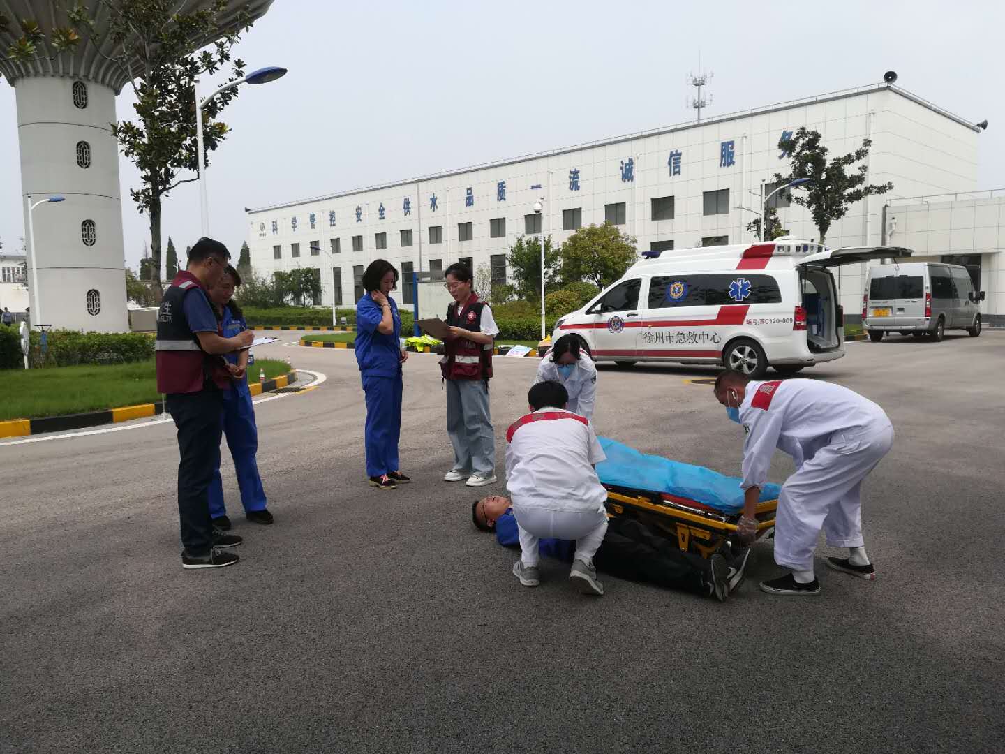 为做好国防动员综合演练工作,检验“苏动-2020”演练准备落实情况,根据市委、市政府、军分区国防动员委员会工作会议精神,按照《徐州市“苏动-2020”演练指挥所编成方案》,徐州市疾病预防控制中心联合急救中心、水厂,结合演练任务制定演练方案,2020年8月10日上午在水厂开展现场演练。徐州军分区、电视台予以现场指导和视频拍摄。