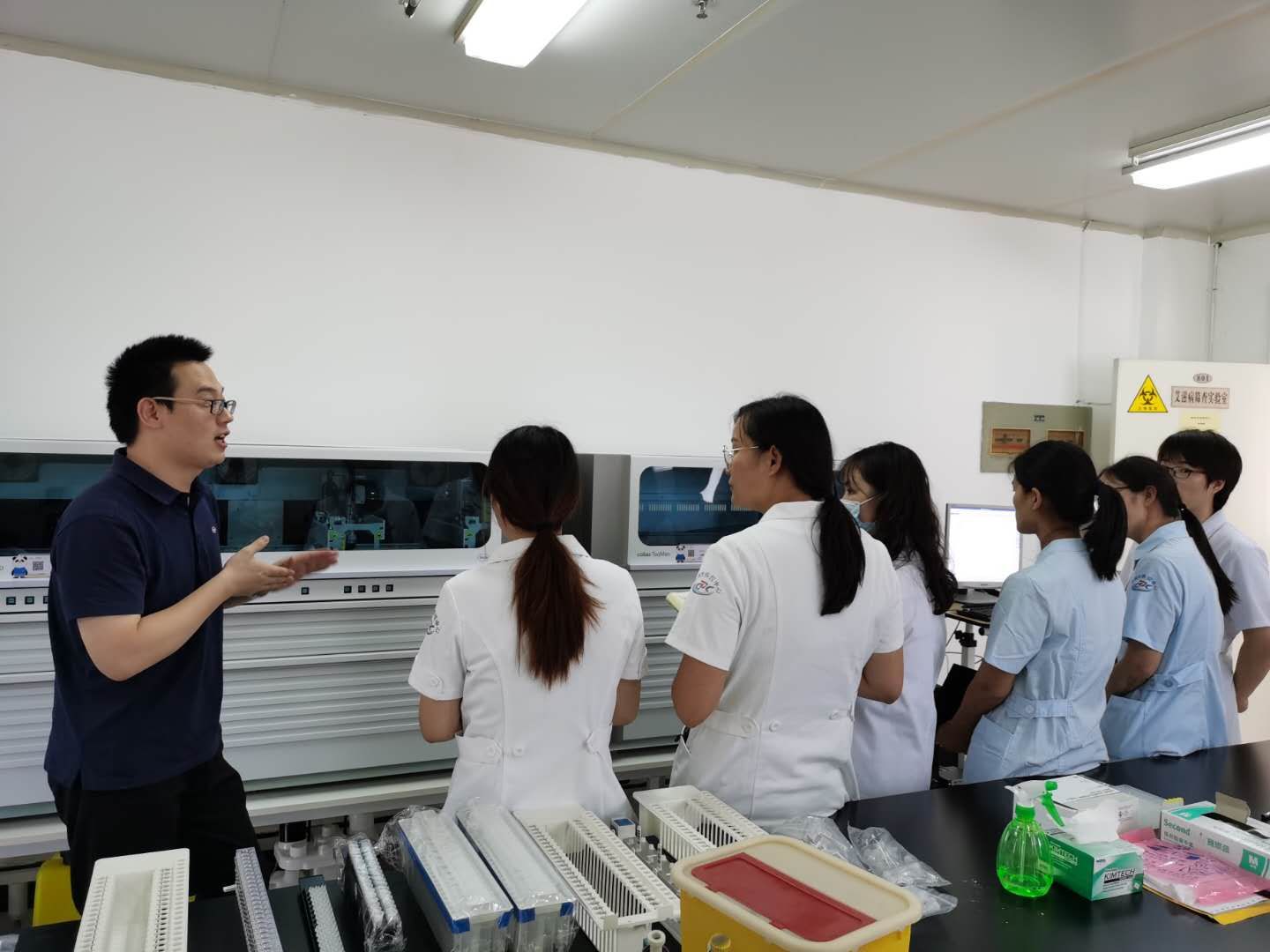 为进一步提升艾滋病确证验室的仪器设备,完善对HIV的病毒检测能力,市疾控中心新采购罗氏艾滋病病毒载量检测仪已安装到位,并开展人员培训。该设备的配置将为全市艾滋病患者抗病毒治疗效果监测,提供全面的技术支撑。