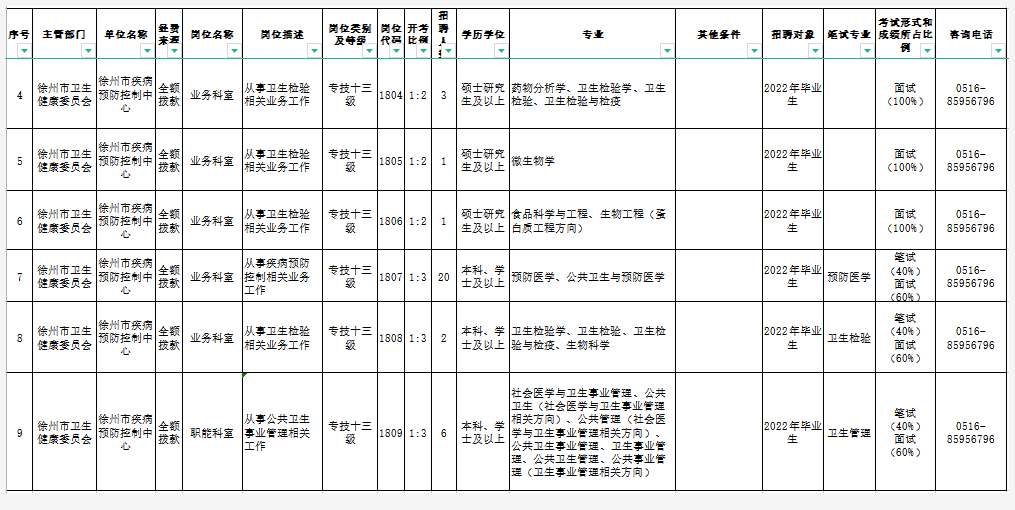 9.《徐州市2022年市、区属部分事业单位公开招聘医务人员岗位表》中专业带有括号注明方向的,须提供毕业院校(院系)出具的专业方向证明或其他相关证明材料(若毕业证、推荐表、成绩单上有专业方向,视同有效);