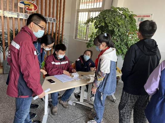 工作人员为学生测量血压 学生在线填写学生健康状况及影响因素调查表