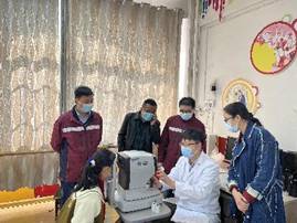 工作人员为学生做屈光检测 工作人员为学生做远视力检查