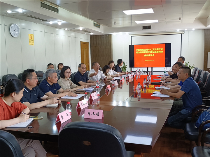 余加席副主任向调研组介绍了徐州市艾滋病肝炎防治工作进展,防治队伍构成、能力建设以及新冠肺炎疫情对全市艾滋病肝炎防控体系的影响。指出了我市艾滋病肝炎防控体系存在基层力量不足、人才引进困难等问题。此后,傅更锋所长就江苏省防控体系建设情况做了介绍。