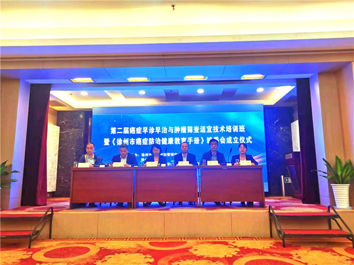 开幕式由市卫生健康委疾控处处长曹配亮主持,徐州市卫生健康委党委委员、副主任常桂秋,徐州市肿瘤医院副院长董桓,徐州市疾控中心党委委员韩威等出席会议。董桓副院长首先致辞,并表示徐州市肿瘤医院与市疾控中心通力合作,积极发挥徐州市肿瘤防治管理中心职能,在肿瘤防治事业上取得了长足的进步,接下来会继续积极承担肿瘤防控的社会责任。常桂秋副主任表示,徐州市卫健委对肿瘤防控工作一直高度重视,自徐州市被纳入国家重大公共卫生服务项目-城市癌症早诊早治项目范围以来,依托项目的开展,建立了以市肿瘤防治管理中心为龙头,综合性和专业性医疗机构为支撑,疾控中心为骨干,基层医疗卫生机构为网底的癌症综合防治体系。并对新时期的癌症防治工作提出了三点意见:一是开展科普宣教和健康环境建设,提高群众防癌抗癌能力;二是强化队伍建设,提高防治能力;建设权威、专业的科普信息传播平台,编制发布癌症防治的核心信息和健康教育的知识要点。市疾控中心党委委员韩威向与会人员介绍《徐州市癌症防治健康教育手册》大概内容并宣读编委会名单。