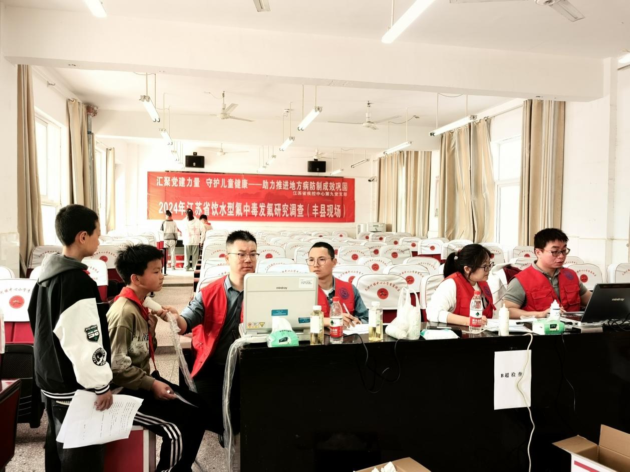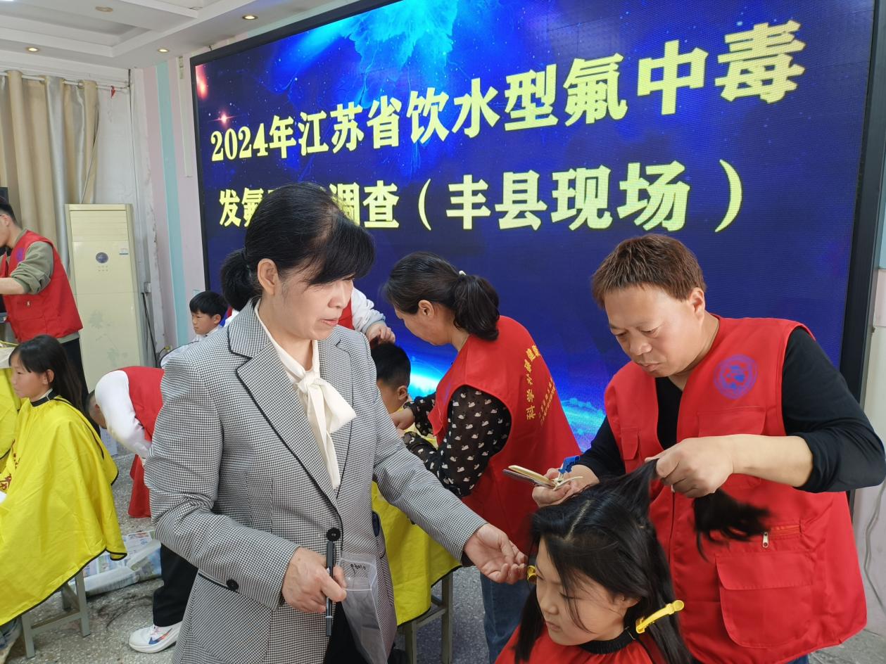 丰县疾控中心在李寨中心小学筛选150余名8-12周岁儿童,对其进行一问卷调查,内容包括基本信息、家庭饮水情况、生活习惯、饮食习惯等内容,二样本采集,包括生活饮用水水样、一次性随机尿样、5g头发样本等,三测量身高体重,四诊断儿童氟斑牙患病情况,五B超测量甲状腺容积。经过省、市、县、镇四级地方病防治工作人员的共同努力,高质量完成了现场调查工作,现场工作得到了夏玉婷副主任医师的高度认可。
