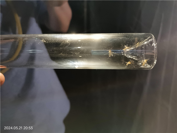5月21日,市疾控中心地寄防科专业人员到铜山区对疟疾蚊媒监测工作进行现场指导。媒介按蚊密度监测采用灯诱法和人饵帐诱法。灯诱法:选择近人房(室内)和近水稻田(室外)且远离干扰光源并避风的环境各一处,悬挂诱蚊灯(诱蚊灯光源离地约1.5m),监测从日落后开始,连续诱集12小时,次日晨收,每半月1次,连续3天,进行种类鉴定,计算成蚊密度;人饵帐诱法:在人房处和野外各悬挂1顶双层叠帐,于19时至24时,一人坐于内帐中诱蚊,另外一人每小时起身到内帐外捕捉停落的按蚊,每次持续15分钟,记录每小时诱捕的蚊虫数量,计算成蚊的密度指数。经过一夜监测,现场捕获库蚊和伊蚊,未发现间日疟传播媒介中华按蚊。根据往年蚊媒季节消长规律,中华按蚊活动高峰出现在7月份。