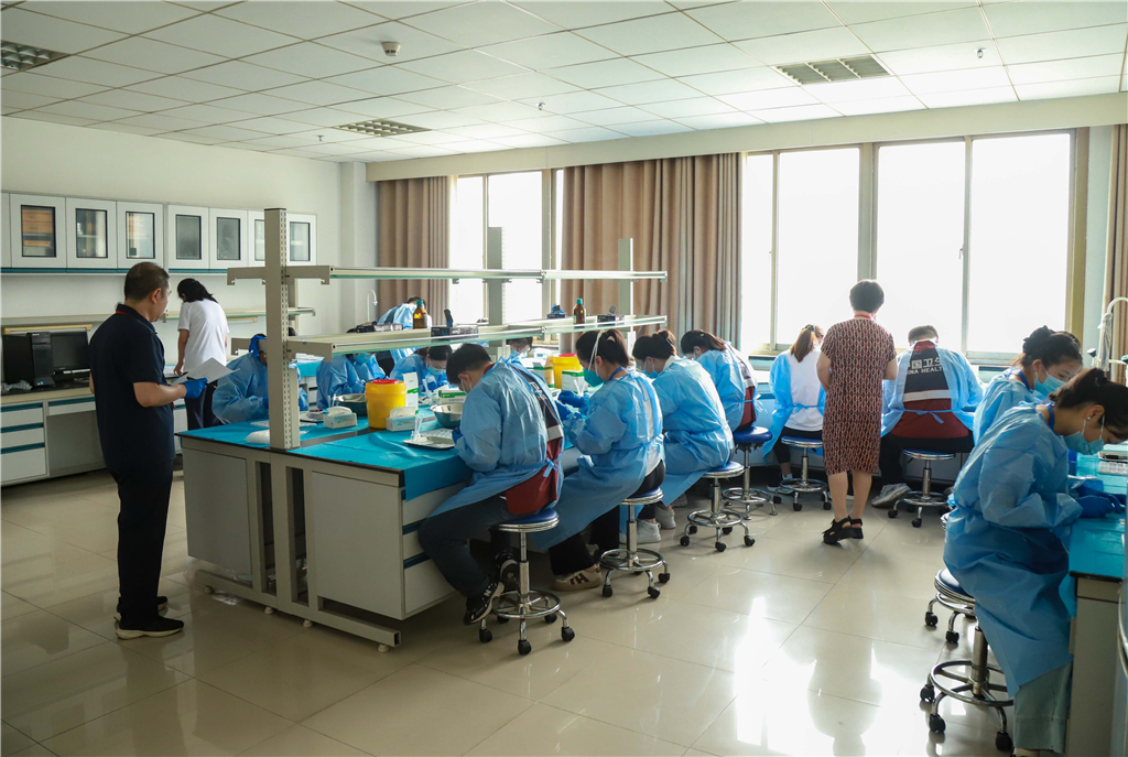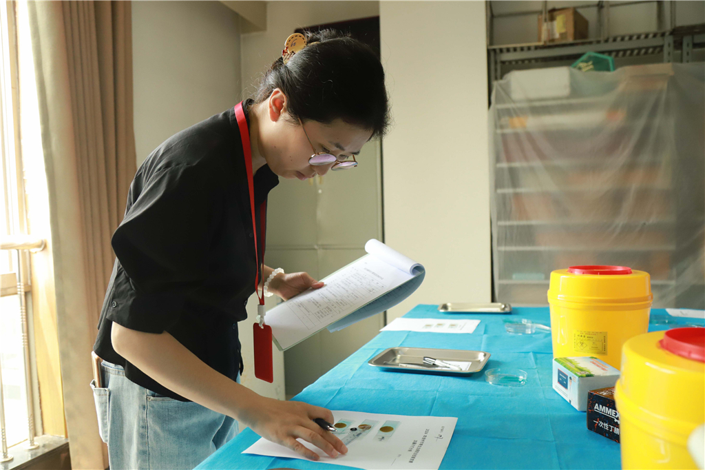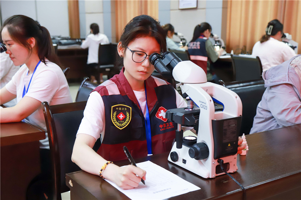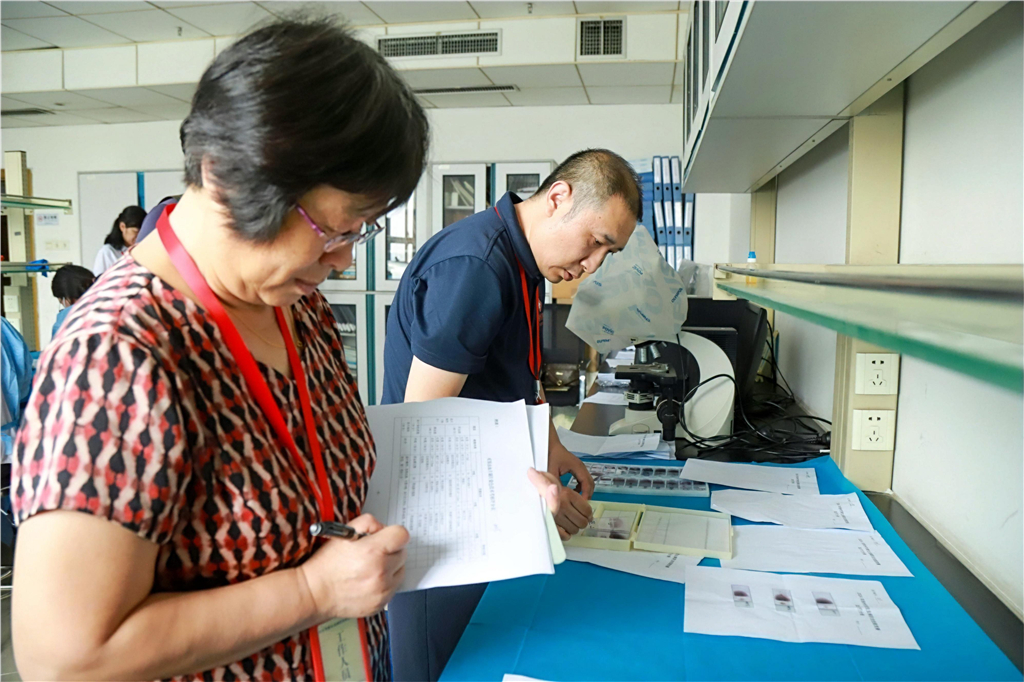 竞赛分为理论笔试和技能操作两部分,理论笔试内容主要围绕血吸虫、疟疾、包虫等与人体健康有关的常见寄生虫的生活史以及病原和诊断基本知识展开,经过90分钟的理论考试,每位参赛选手都交上了展现个人实力的优秀答卷。技能操作考试主要围绕疟原虫厚、薄血膜和粪便改良加藤厚涂片的制作、染色及镜检读片等多个方面展开。从多维度对寄生虫病防治工作的从业人员的综合技能进行考核。