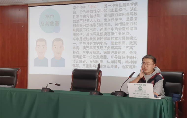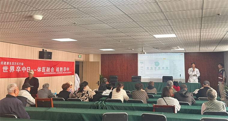 本次活动通过开展科普健康讲座的形式,系统地讲解了脑卒中的发病原因、常见危险因素、快速识别脑卒中的方法和如何预防复发和康复训练,并给患者详细介绍了如何通过运动预防脑卒中的发生。市疾控中心慢病科许鹏向社区居民科学宣讲了关于脑卒中基本知识和防治要点,并现场详细解答群众对脑卒中防治的相关咨询。活动现场气氛热烈,群众参与度高,工作人员还为慢病患者进行了体格检查、血压测量和血糖血脂检测,并对慢病患者的管理和控制情况进行了个性化的生活方式指导。