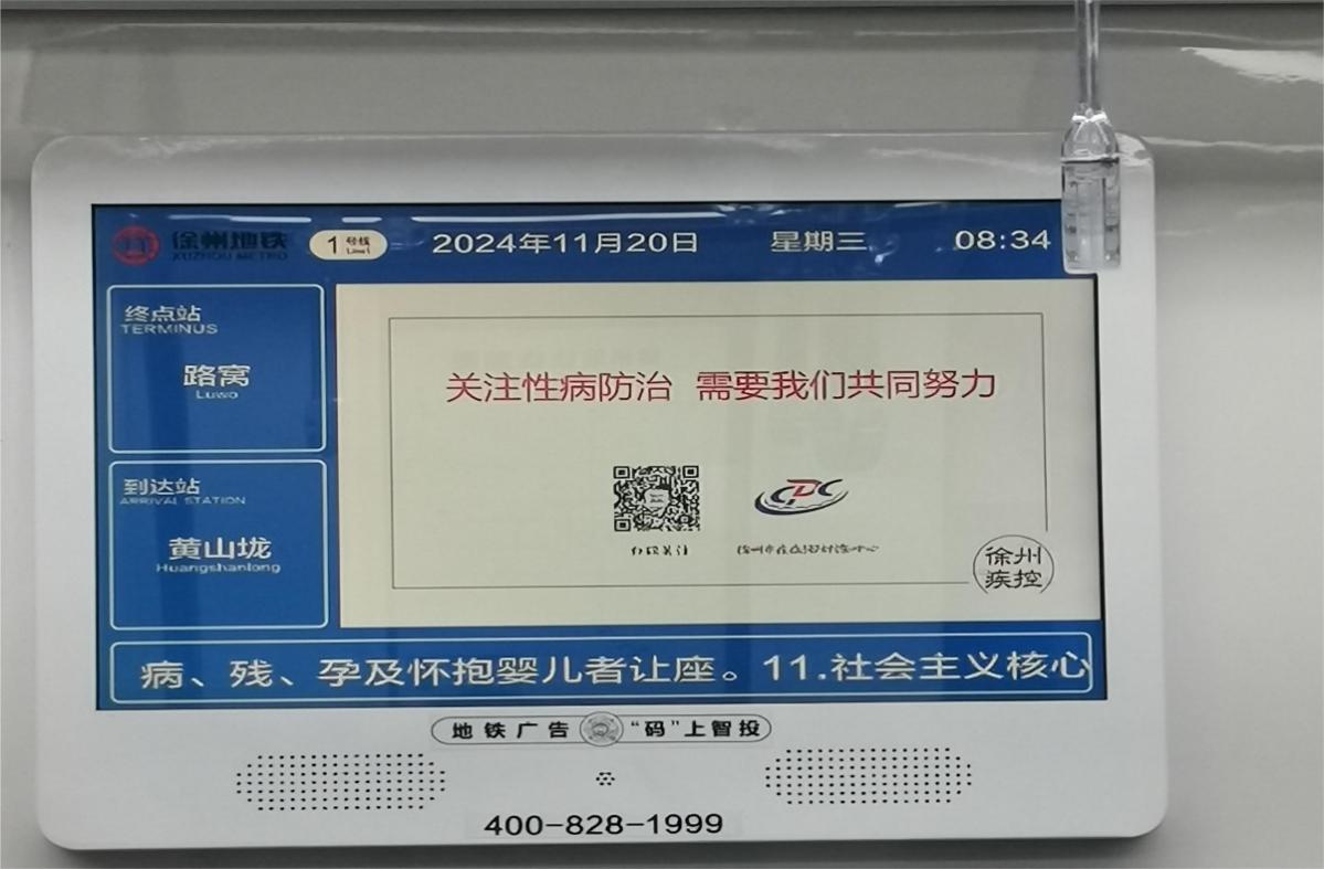 为落实《国务院防治艾滋病工作委员会办公室关于做好2024年“世界艾滋病日”主题活动的通知》要求,结合艾滋病日活动同步开展性病防治宣传,营造全社会参与艾滋病性病防治的良好氛围,11月20日起,徐州市疾控中心在地铁各线路开展为期30天的“性病防治主题宣传月”公益广告展播活动。