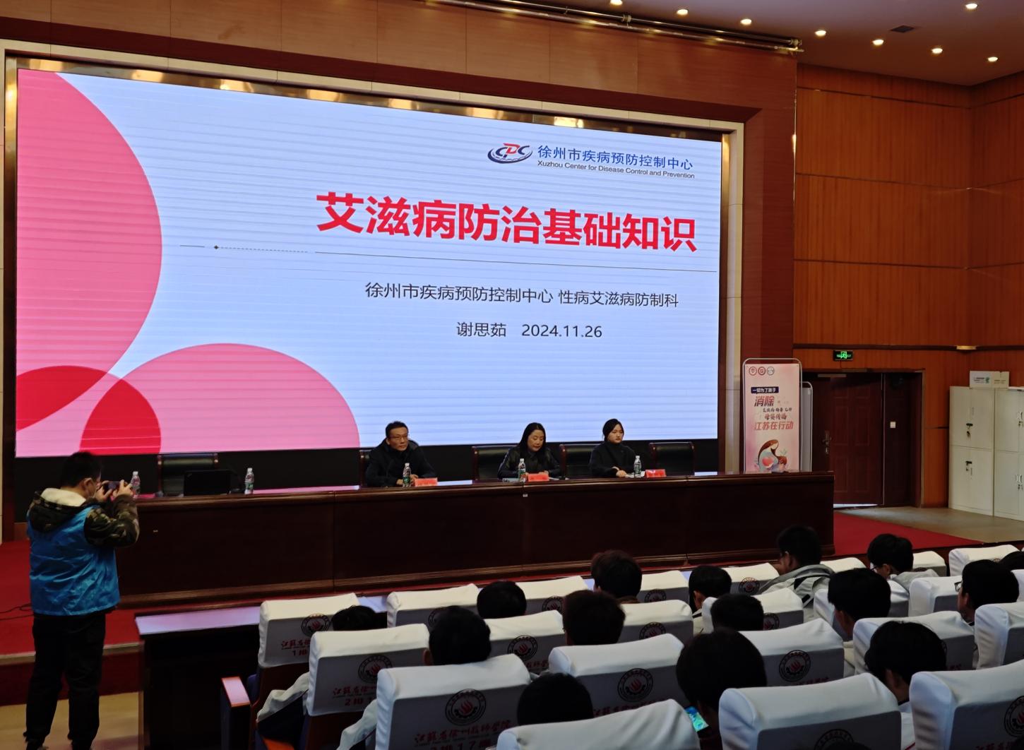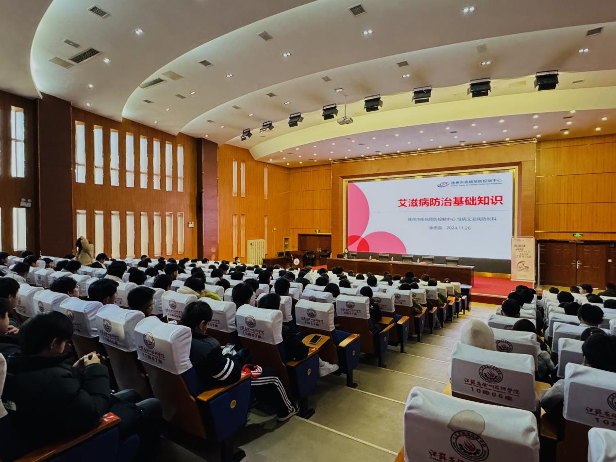 此次活动由徐州技师学院总务处处长张艳主持,介绍了本次活动的重要意义和流程安排。徐州市疾控中心性病艾滋病防制科科长孙传武开场,强调了艾滋病防治工作在校园健康教育中的重要性;讲座部分由市疾控性艾科谢思茹医师担任主讲,强调了艾滋病的主要传播途径,提醒同学们在日常生活中要避免的高危行为。活动最后设置了有奖问答环节,同学们纷纷踊跃举手抢答,进一步加深了对艾滋病相关知识的记忆。