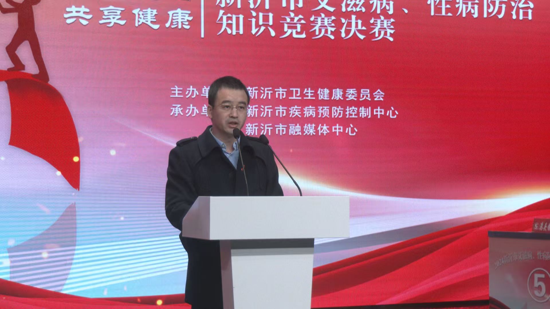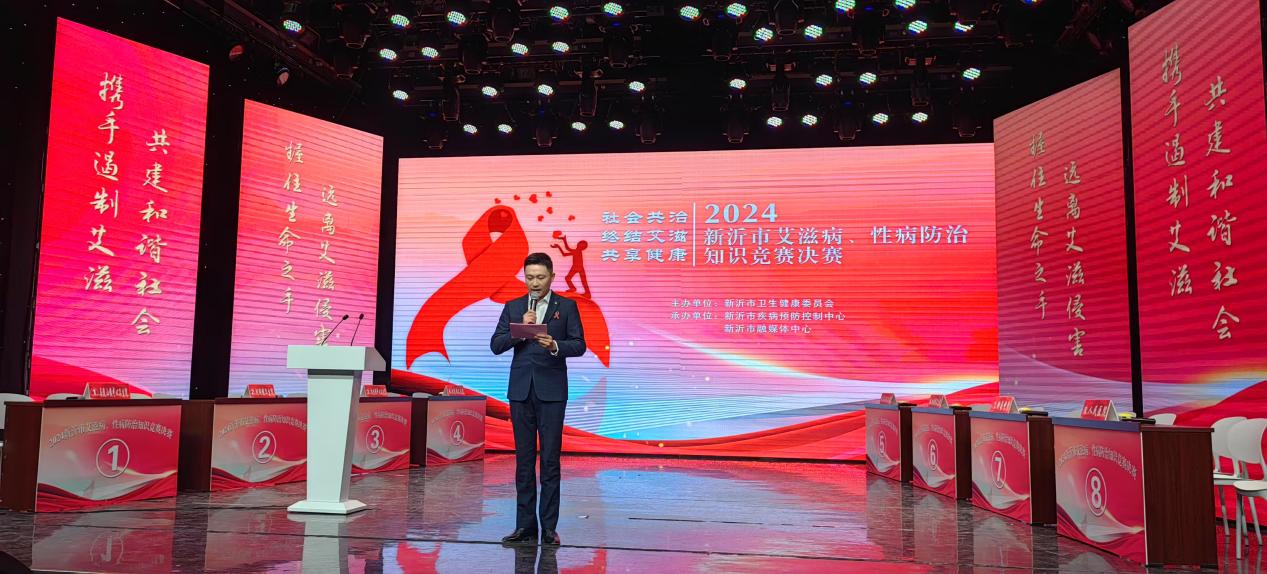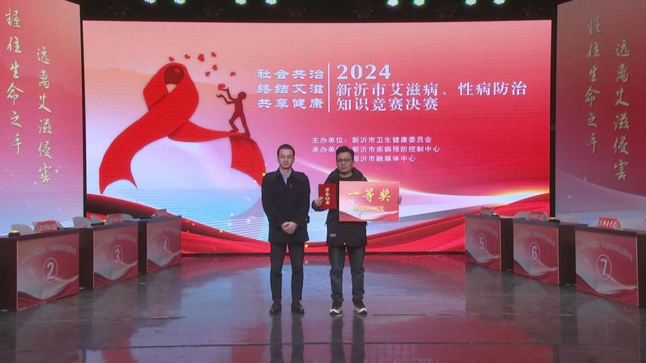 新沂市卫生健康委员会主任黄桂阵、江苏省疾控中心性病与艾滋病防制所副所长邱涛、徐州市疾病预防控制中心性病艾滋病科科长孙传武、新沂市卫生健康委员会党委委员、疾控局局长、疾控中心主任洪闯、新沂市疾病预防控制中心副主任王志、新沂市疾病预防控制中心性艾科科长邹小扣出席活动并为获奖选手颁奖。
