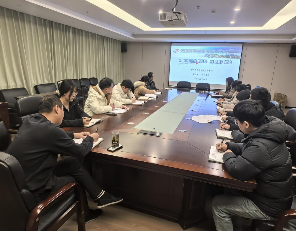 为加强能力建设、提升职业病危害因素监测工作的质量与水准,2025年2月24日,职业与环境卫生科开展了第二期《职业卫生技术服务工作规范》(GBZ331-2024)专题培训会,会议由职业与环境卫生科科长薛城主持,科室中负责相关工作的成员参加本次研讨会。