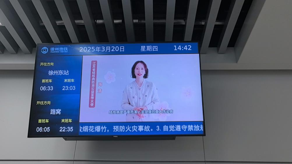 3月20日清晨,徐州地铁全线载着海清老师的结核病防治知识科普缓缓出发。值第30个“世界防治结核病日”来临之际,徐州市疾控中心以“全面行动 全力投入 全民参与 终结结核”为主题,将地铁打造成“移动科普课堂”。车站内,醒目的科普海报与循环播放的短视频吸引市民频频驻足,让徐州市民在出行间隙轻松掌握结核病防治要点,日均覆盖人流量超30万人次。