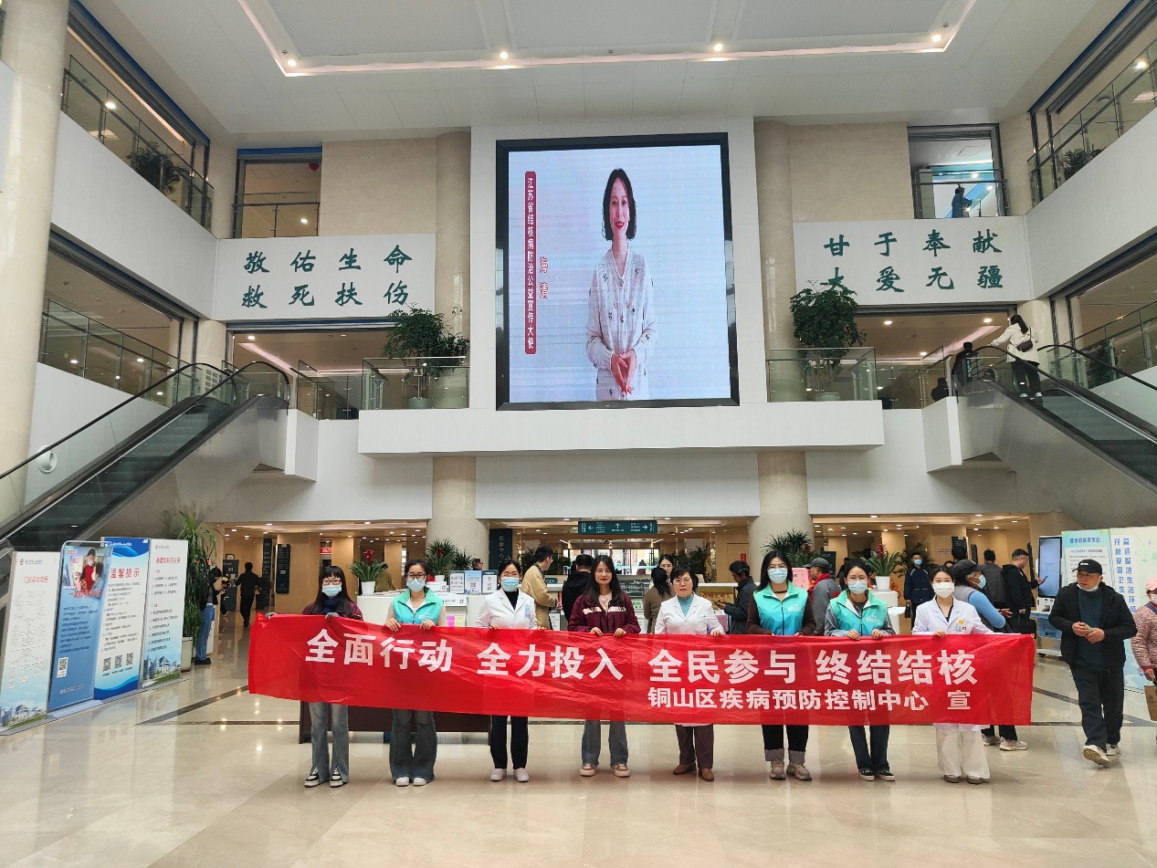 2025年3月24日是第30个世界防治结核病日,为进一步普及疾病预防知识,提升市民专业素养,市疾控中心联合铜山区疾控中心,走进徐州市第一人民医院开展"全面行动 全力投入 全民参与 终结结核"主题宣传活动。