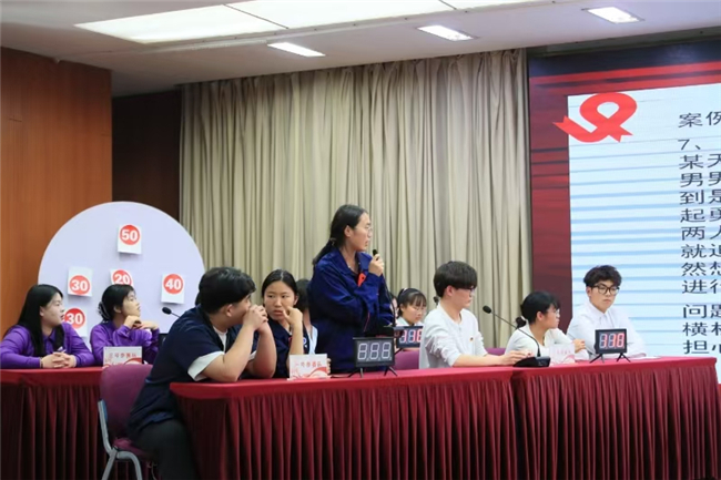 决赛设置“稳扎稳打”必答题、“分秒必争”抢答题和“险中求胜”风险题三轮环节。参赛选手凭借扎实的知识储备和敏捷的反应能力,展现了青年学生对艾滋病防治的高度关注。在风险题环节,徐荣艳作为评委,结合题目延伸讲解“HIV阻断药72小时黄金用药期”“窗口期”等专业内容,引导学生用科学思维应对风险。活动特别设置观众互动环节,通过趣味游戏向在场师生普及防艾知识,现场气氛热烈。