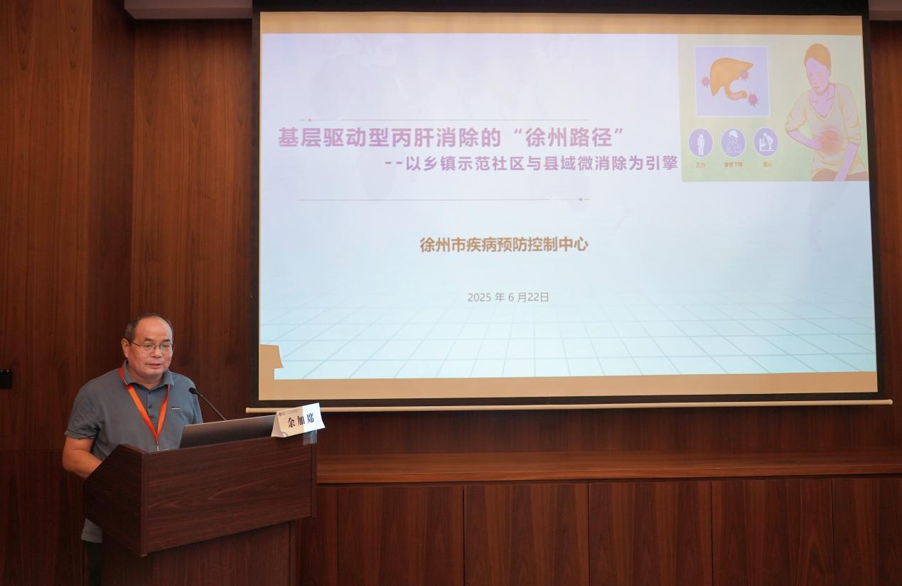 在专题报告环节,徐州市疾控中心副主任余加席以“基层驱动型丙肝消除的‘徐州路径’”为题,详细介绍了以乡镇示范社区与县域“微消除”为核心驱动的创新模式。该模式立足基层实际,构建“村级动员-乡级管理-县级治疗”三级体系,通过实施丙肝知识宣教和健康促进、社区人群精准筛查、病例五色档案管理、多部门协同配合以及医保政策撬动等综合措施,在铁富镇(隶属邳州市)和新沂市全域显著提升了治疗率、追踪率等关键指标,多项指标已提前达到2030年消除目标。