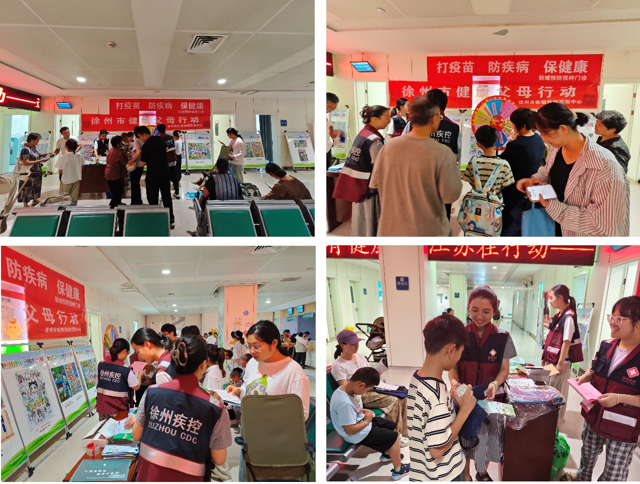 7月15日,活动进一步深入,市疾控中心携手云龙区疾控中心,走进徐州市中心医院预防接种门诊,将健康宣教送至家长身边。活动现场,疾控工作人员通过通俗易懂的健康知识宣讲、亲子绘画优秀作品温情展示、趣味十足的 “健康知识大转盘” 有奖答题等多元形式,向家长们重点科普了近视、肥胖、龋齿、脊柱侧弯、心理健康等学生常见病的科学防控知识与实用技能。活动特别提醒家长,在假期中需关注孩子的健康细节,用耐心与引导帮助孩子养成受益终身的良好生活习惯。