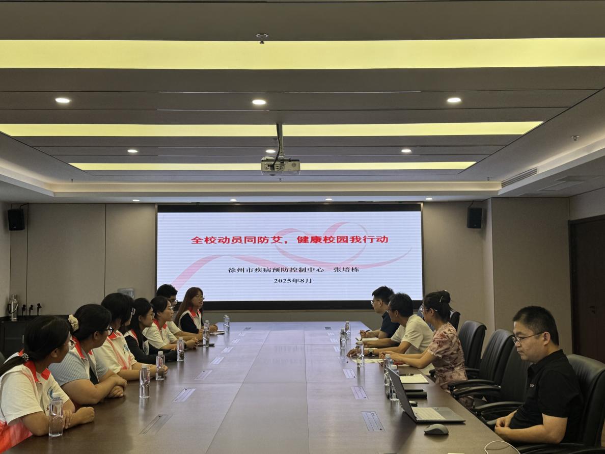 培训交流会现场,气氛热烈而庄重。徐州市疾控中心性病艾滋病防制科科长孙传武率先向远道而来的学校防艾三下乡团队致以诚挚欢迎。随后,他以清晰的思路和专业的视角,深入浅出地概述了徐州市艾滋病疫情的流行特点,着重强调了青年学生这一特殊群体在防艾科普宣传中的关键地位。他指出,青年学生作为社会的未来栋梁,提升他们的防艾意识与知识水平,对于遏制艾滋病传播、构建健康社会具有深远意义 。
