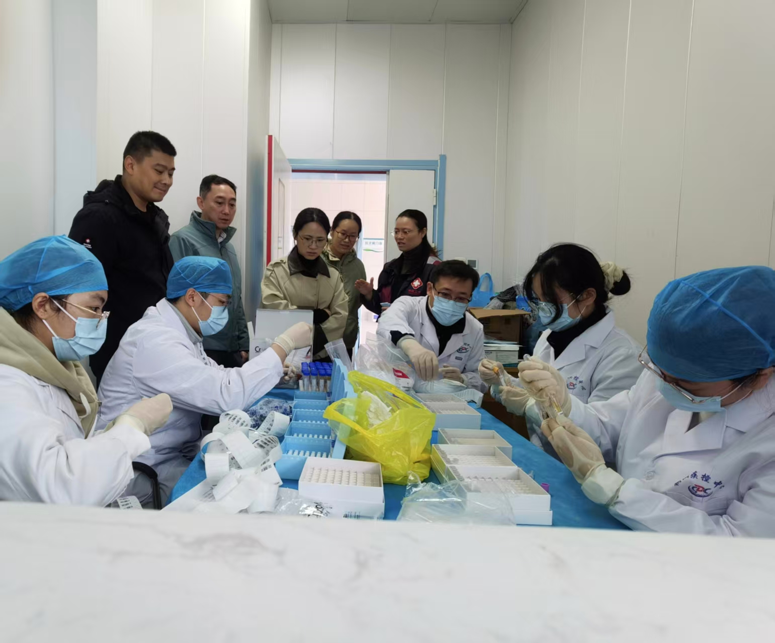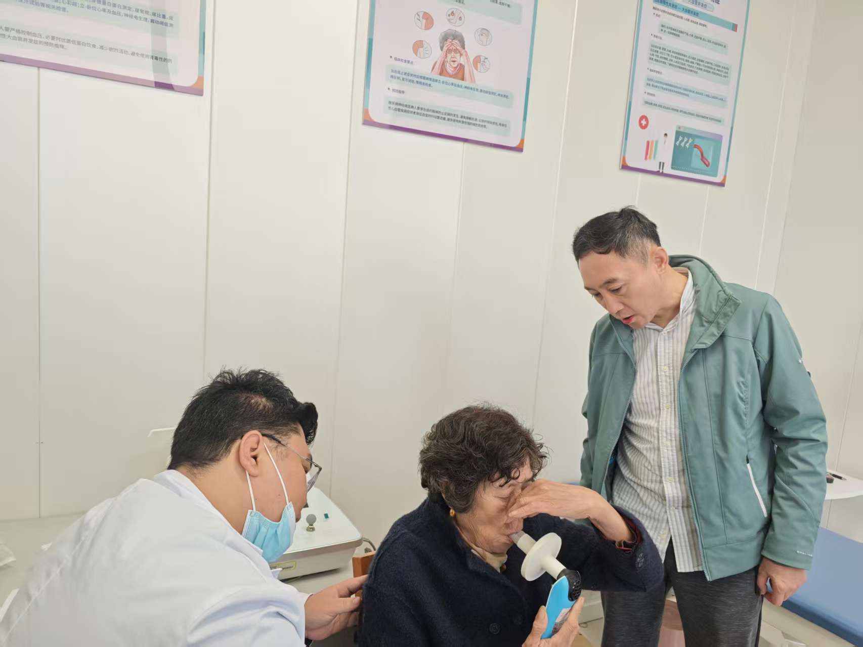 在铜山区郑集镇慢阻肺综合防控项目现场,指导组专家就现场工作流程、筛查登记、问卷调查、简易肺功能筛查、生物样本分装等环节进行观摩和指导,对简易肺功能仪器的操作及规范动作进行了现场示范;并与市、区及项目点的工作人员进行了充分交流。同时也对项目中存在的问题提出意见和建议:一是简易肺功能筛查人员要熟练掌握动作要领,提高工作效率和质量;二是优化调查流程,分段预约调查,避免居民等待时间过长从而造成依从性下降。