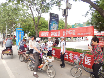 为进一步规范公共场所经营活动,为顾客提供良好的卫生环境,预防传染病和保障公众健康,同时让公众对消费的公共场所应提供的卫生安全服务、应采取的卫生安全措施等有一定程度的了解,沛县卫生监督所城区分所2015年6月3日---4日在沛县城区开展了公共场所卫生宣传活动。活动分两个地点:汉城商都和体育馆。此次宣传,沛县卫生监督所制作了公共场所卫生“十要”、“十不要”、“从业人员卫生知识必读、医疗美容要远离非法行医等卫生知识宣传彩页及“创建无烟环境、共享健康生活”、“关心自己,做一个健康的你”、“二手烟的危害”、“吸烟容易引发的疾病”宣传画板,印制了《公共场所卫生管理条例》等相关法律法规知识宣传材料和宣传画板,通过悬挂宣传横幅、展出画板、发放宣传单、设立咨询点等方式向群众进行现场宣传。活动现场共悬挂宣传横幅2条,展出吸烟有害健康展板4块,发放宣传彩页2000份,分发相关法律法规知识宣传资料2000余份。