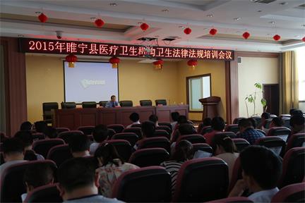 为进一步规范医疗机构执业行为,维护医疗服务市场秩序,提高医疗服务质量,保障医疗安全,提高广大卫生技术人员的法律和业务素质,睢宁县卫生监督所于2015年7月22日召开医疗机构法律法规知识培训会议。全县各镇卫生院院长、业务院长、防保站业务站长、卫协主任、医疗组长、护士长、院感和消毒人员,近年来新参加工作的医生、护士等;各民营医院院长、业务院长、医疗组长、护士长、院感科和供应室负责人;各厂矿医务室和个体诊所负责人以及县卫生监督所全体卫生监督员,共计300余人参加了会议。