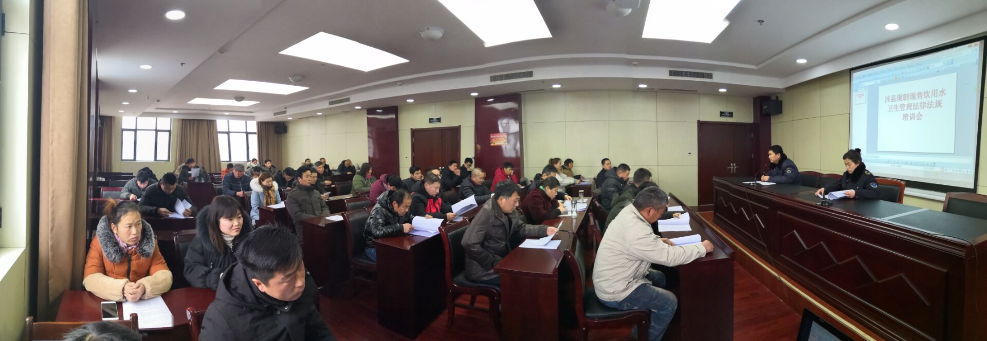 近年来,市民越来越重视饮水安全,对饮用水卫生、营养及质量均有较高要求,这给现制现售饮水提供了市场,但是大部分市民对卫生标准及要求知之甚少。为进一步加强现制现售饮用水卫生监督管理,确保现制现售饮用水卫生安全,保障人民群众身体健康。2019年度1月11日下午,沛县卫生监督所在监督所10楼会议室召开了“沛县现制现售饮用水卫生管理法律法规培训会”。全县共48家现制现售饮水经营者与全体分所人员参加了会议。