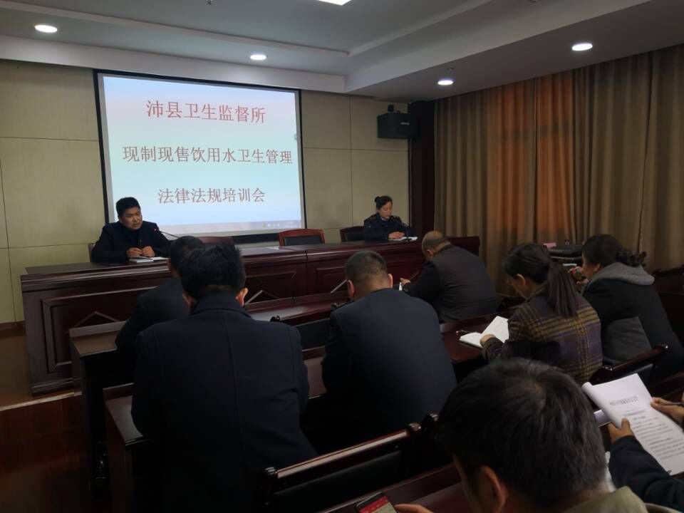 为进一步提升沛县现制现售饮用水卫生监督技能,强化执法人员对现制售饮用水卫生监督执法能力,保障广大市民饮水安全。沛县卫生监督所于2019年3月22日在所大会议室召开了现制现售饮用水卫生监督技能培训会,县卫生监督所全体卫生监督员参加了培训。