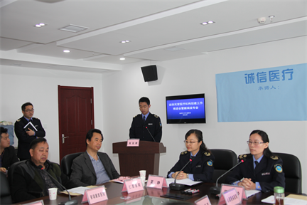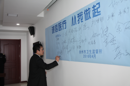 此次诚信民营医疗机构创建工作新闻发布会的主题是“诚信医疗,从我做起”。会议共分为四项议程,首先由市卫生监督所副所长周丽玲同志作重要讲话,并重点介绍了徐州市诚信民营医疗机构创建工作的有关情况和下一步的工作计划。会议第二项,徐州市卫生监督员代表李致远同志和医疗机构代表徐州市仁慈医院院长宗亚力同志分别宣读了“卫生监督诚信行政承诺书”和“民营医疗机构诚信执业承诺书”。随后,各参会医疗机构负责人纷纷到签名墙签名,承诺“诚信医疗,从我做起”。签名仪式结束,会议进行到第四项答记者问环节。周丽玲副所长和夏静处长分别就大家关心的创建工作的目的和现实意义,创建工作的具体举措以及医疗机构诚信程度的评价标准等话题回答了记者提问。
