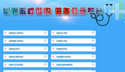 前期通过召开动员会、推进会和现场指导等方式,各参与创建单位在单位软硬件设施建设和内涵建设方面取得了很大进展。近期,为了加强民营医疗机构行业自律和社会监督,徐州市卫生监督所在徐州卫生监督网开通了民营医疗机构信息公示平台。目前公示的主要信息包括本次参与创建的26家民营医疗机构的医院基本信息,在册医师和护士信息等,下一步,我们将继续完善平台数据,逐步公示参与创建医疗机构的临床技术应用信息和抗菌药物使用信息,并逐步扩展到全市医疗机构信息公示。