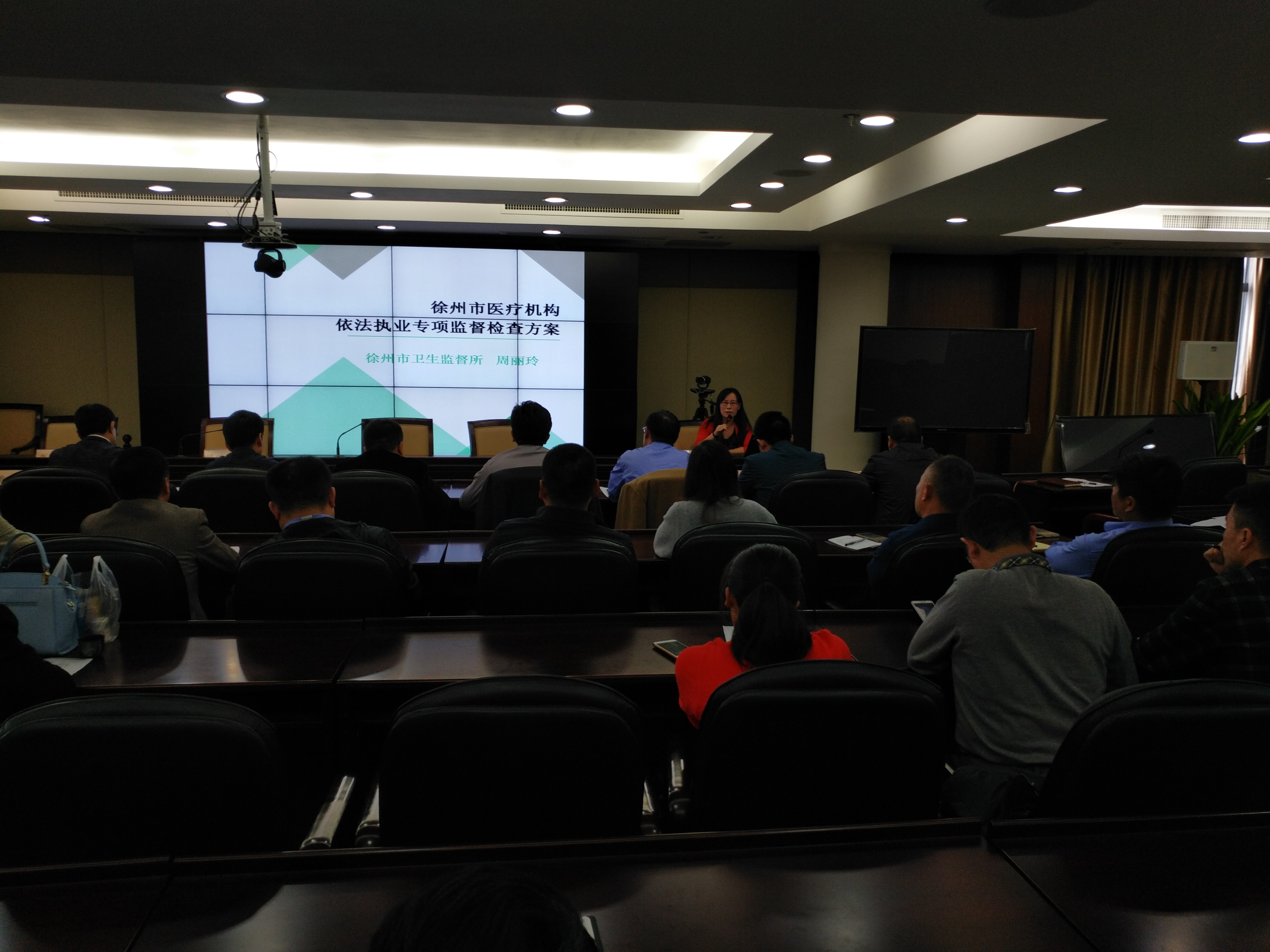 近日,徐州市召开全市医疗机构依法执业专项监督检查工作会议,部署全市专项监督检查任务,切实履行全市医疗服务监督职责。市卫生计生委党委委员、市卫生监督所杨晶所长出席会议并讲话。会上,市卫生监督所周丽玲副所长传达了省会议精神、具体部署我市监督检查任务,会议邀请委医政医管处季培琛副处长以及市卫生监督所监督四处夏静处长分别就医疗技术临床应用管理以及无证行医查处规范进行了相关培训。