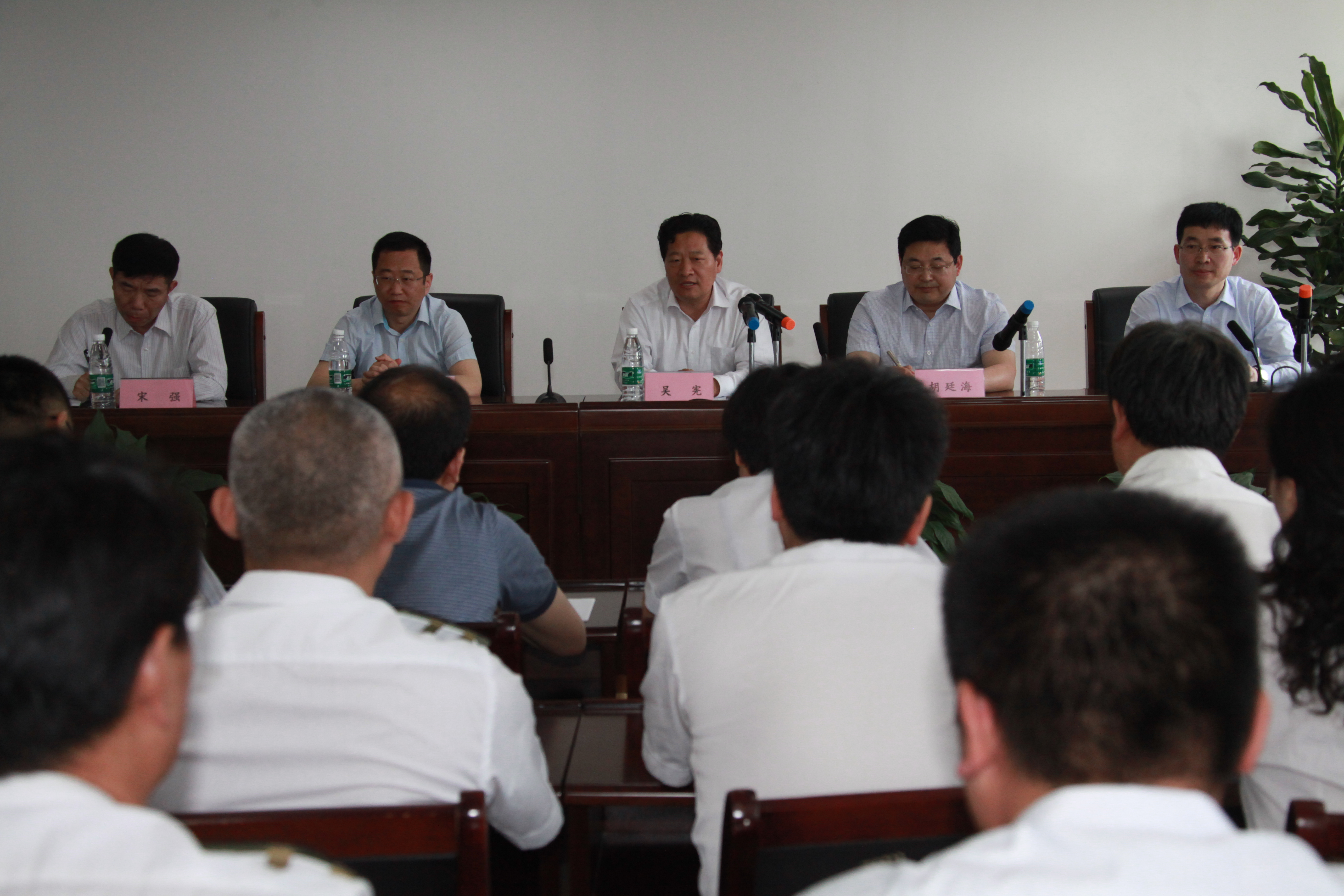5月19日上午,我所召开全所干部大会,宣布市委关于徐州市卫生监督所主要领导调整的决定。市卫计委党委书记、主任吴宪出席会议并作讲话,市委组织部干部四处处长胡廷海宣读市委决定,杨晶、胡良玉分别发言,会议由市卫生监督所党总支书记宋强主持,所中层及以上干部 30余人参加会议。