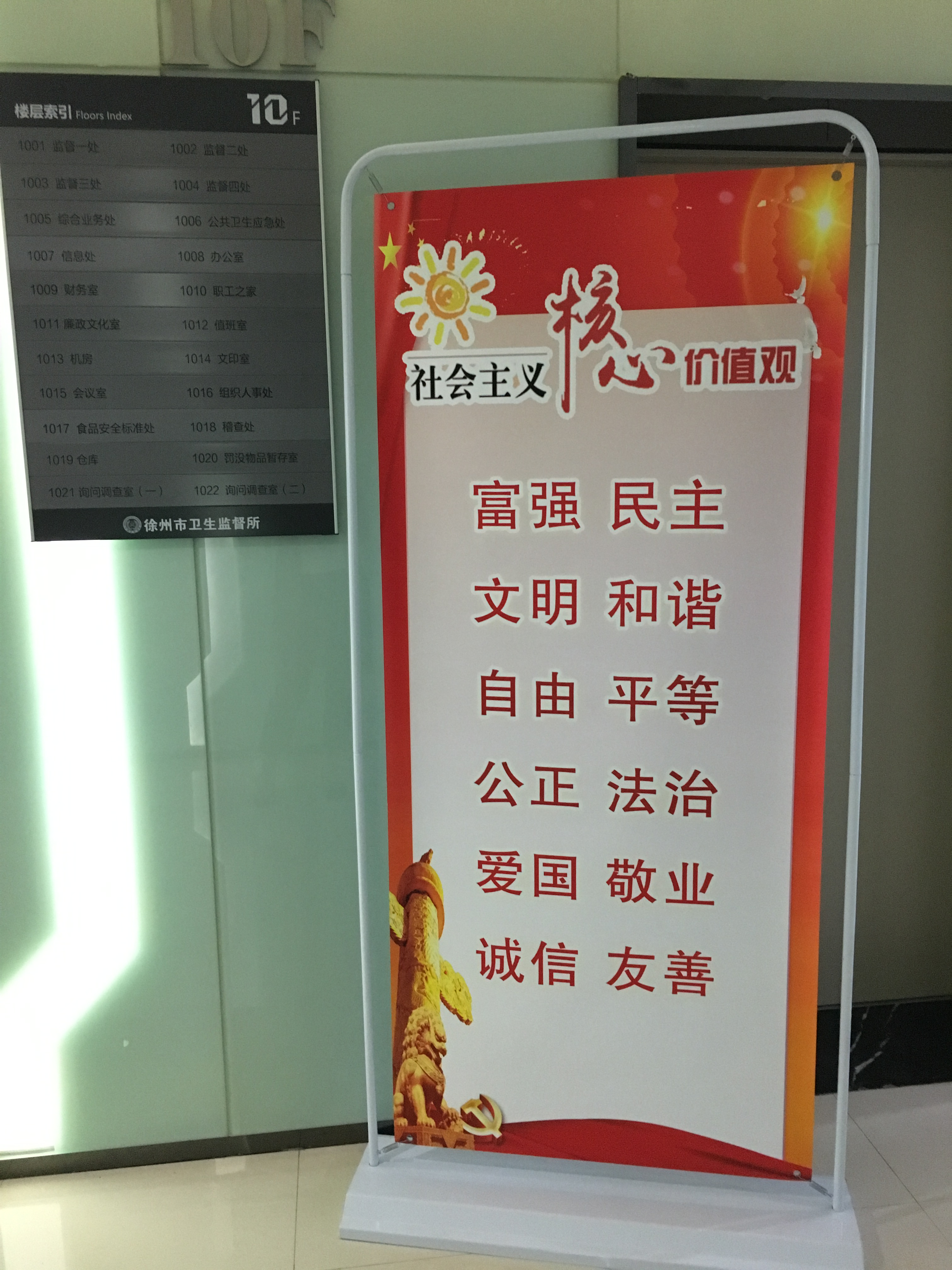 “富强、民主、文明、和谐,自由、平等、公正、法治,爱国、敬业、诚信、友善”24字,是党的十八大明确对社会主义核心价值观的准确表述,也是社会主义核心价值观宣传教育的重点内容。 为认真贯彻落实中央办公厅《关于培育和践行社会主义核心价值观的意见》精神,大力营造培育和践行社会主义核心价值观的社会氛围,使社会主义核心价值观内容深入人心,徐州市卫生监督所通过道德讲堂、微信公众号、卫生监督网、以及在单位的每个楼层设置宣传牌等多种形式开展社会主义核心价值观的系列宣传教育活动,加深社会主义核心价值观的知晓率,坚持把社会主义核心价值观作为学习型党组织建设的一项重要内容,提升党员干部思想道德素质。