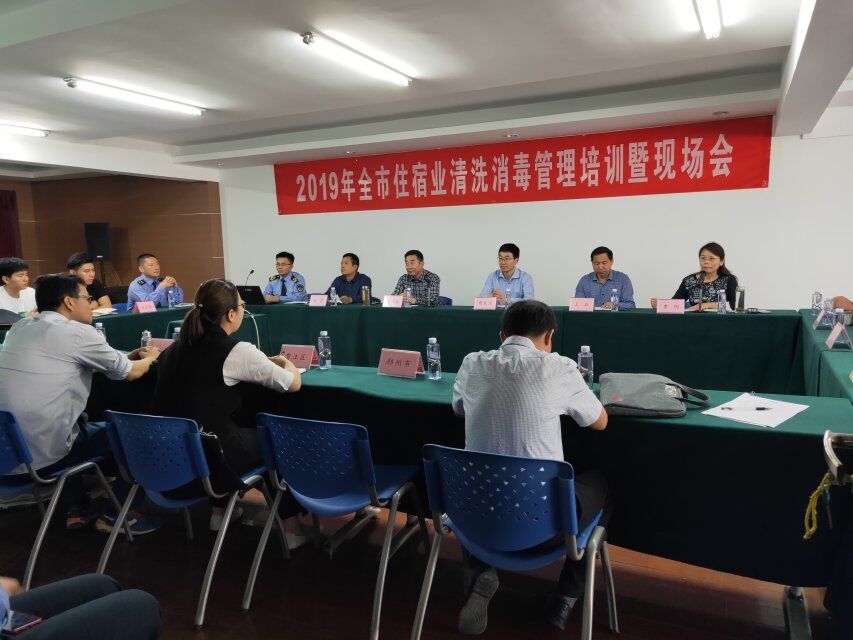 为进一步加强住宿业规范管理,提升卫生监督员业务知识和能力水平,5月31日,我市在云龙区卫生监督所召开全市住宿业清洗消毒管理培训暨现场会,各县(市)、区卫生监督所公共场所卫生管理分管领导和相关业务科室负责人共30余人参加了会议。