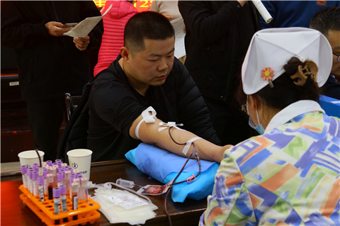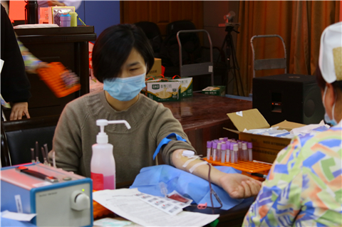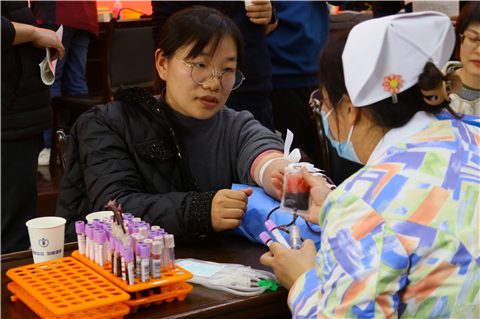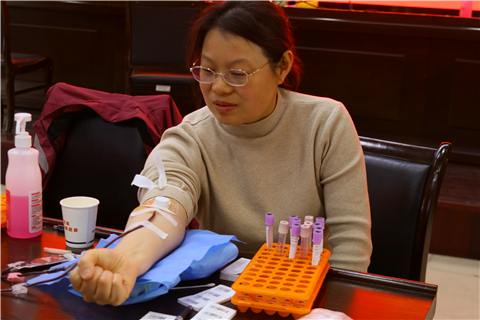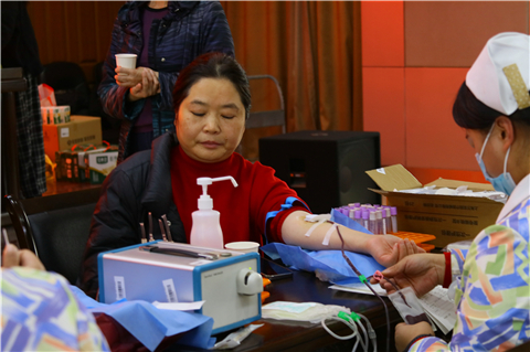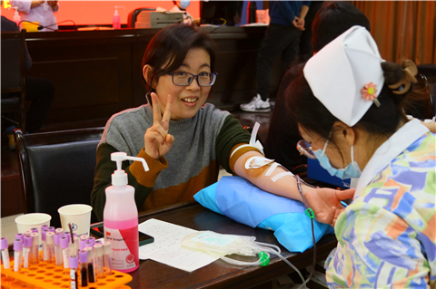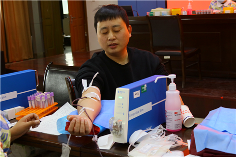 2月28日下午14时,参与献血的各个部门的干部职工准时来到现场,在血液中心工作人员指导下填写“无偿献血登记表”,井然有序地配合工作人员进行身体检查、抽取血液、化验血型等各个流程的检查。随着一条条输血管里血液的流动,承载着生命能量的血液被装入“生命袋”,一袋袋红色暖流汇聚成巨大能量,为有需要的人送去希望。