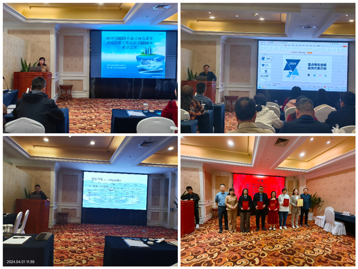 陈科长总结了2023年工作情况,并对2024年重点工作作了部署,各县(市、区)要精益求精,保质保量完成各项工作;泉山区、丰县、邳州市分享了工作经验,为各地工作开展提供了良好借鉴;科室人员分别就地方病患者管理、碘氟砷等地方病监测、疟疾及肠道寄生虫病防治等工作方案及寄生虫病防治信息系统进行了培训,明确了下一步工作方向及要求。最后,会议对2024年“全市防治碘缺乏病科普作品征集活动”中优秀作品进行了表彰, 鼓励各县(市、区)再接再厉,在地方病防治健康教育工作中发挥更大的作用。