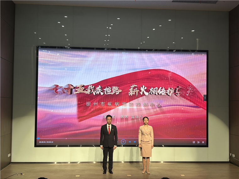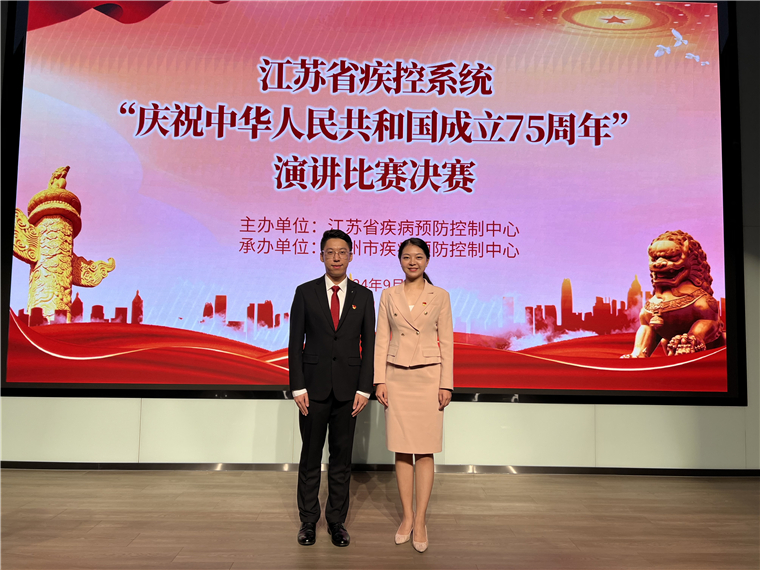 在庆祝中华人民共和国成立75周年之际,为了弘扬新时代疾控精神,展现疾控工作者的责任与担当,江苏省疾控中心组织了踔厉奋发 疾控有我暨献礼新中国成立75周年主题演讲比赛。经过激烈角逐,徐州市疾控中心代表队韩姝、陈瑞昂二人凭借精彩的演讲内容和卓越的表现,最终荣获比赛一等奖的优异成绩。