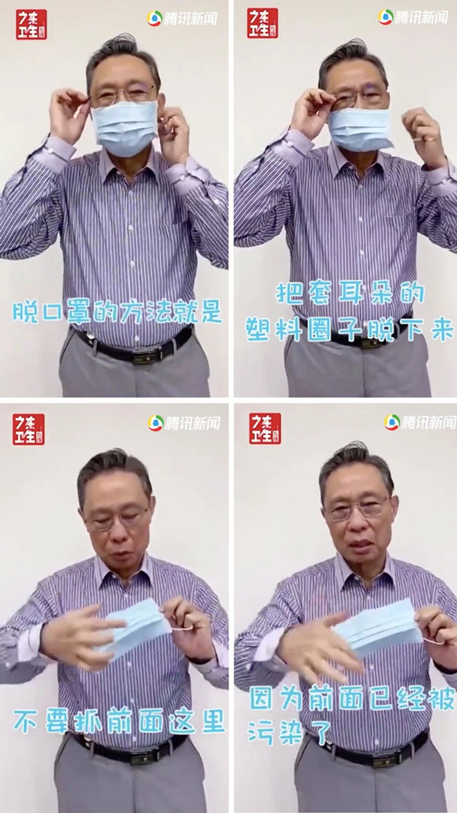 钟南山院士示范摘口罩