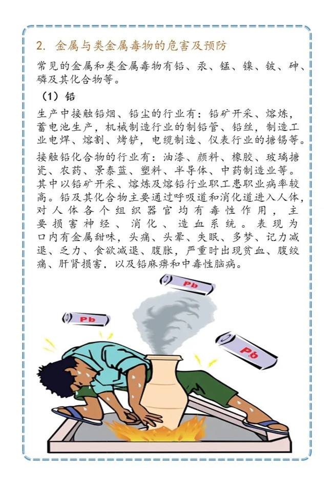 3. 职业性化学中毒。有铅及其化合物中毒、汞及其化合物中毒等。