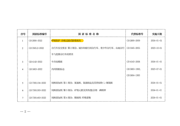 国家市场监督管理总局(国家标准化管理委员会)批准《呼吸防护 自吸过滤式防毒面具》等54项强制性国家标准