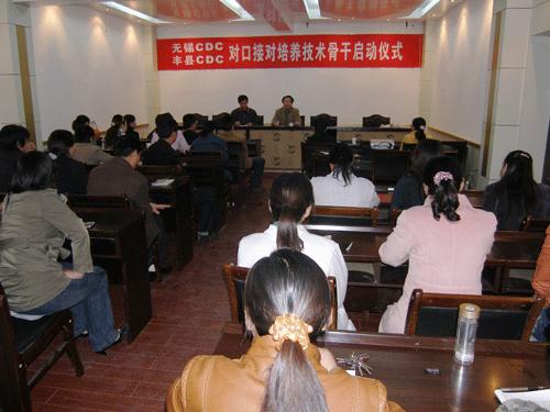根据无锡市卫生局“关于开展无锡市城市对口支援城乡基层卫生工作实施方案”的要求和《省卫生厅关于城市医生晋升职称前到基层医疗卫生机构服务的意见》精神,结合无锡市疾病预防控制中心对口支持丰县疾病预防控制中心的工作实际,无锡市疾病预防控制中心派遣十一位专业技术人员来丰县开展了对口接对培养技术骨干活动。2007年11月8日,无锡市疾病预防控制中心、丰县疾病预防控制中心对口接对培养技术骨干启动仪式在丰县疾病预防控制中心举行。 派遣来丰的十一位专业技术人员与丰县疾病预防控制中心的十一位技术骨干签订了教学责 任协议书。