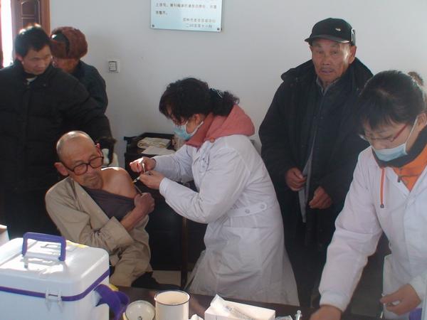 根据卫生部《流感疫苗接种指导意见》的要求,60岁以上老人等7种人群为流感疫苗接种的重点推荐人群,但由于流感疫苗为Ⅱ类疫苗,价格相对较高,近年来发现我市儿童流感疫苗接种率较高,而60岁以上老人接种率水平很低。针对这一情况,今年,疾控中心领导决定加大宣传力度,切实加强重点人群的流感疫苗接种工作。12月14日,邳州市疾控中心组织疾控科、预防接种门诊、健康教育科等11名业务人员到我市敬老院、光荣院为50多名老人免费接种流感疫苗,疾控中心刘林主任等领导亲临现场,进行技术指导。疾控中心同时在敬老院院内摆放30块防病知识板块供老人们学习,老人们都深受感动。邳州市电视台对本次活动进行了全程报道。