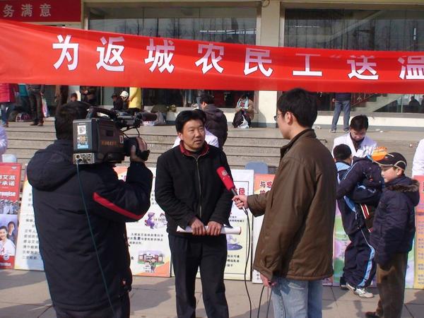 返城民工接受媒体采访