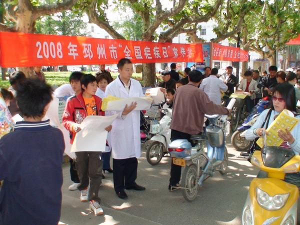 4月26日是我国第一个“全国疟疾日”,邳州市疾病控制中心在市中心人民路设置了宣传站,通过发放宣传品,制作展板等形式开展宣传活动。邳州市卫生局曹振中局长、社卫科胡洋副主任、邳州市疾控中心主任刘林等领导及专业人员10余人参加宣传活动。
