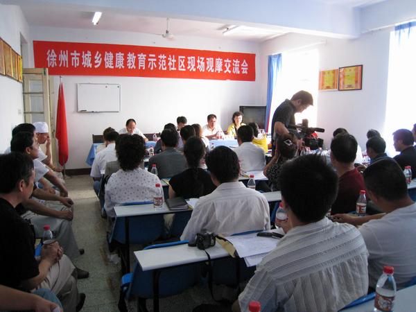 为认真贯彻落实《徐州市创建城乡基本公共卫生服务项目“健康教育示范社区”活动实施方案(试行)》(徐卫疾控〔2007〕32号)文件精神,总结、推广先进典型经验,以点带面,进一步推动我市城乡两个基本公共卫生服务项目健康教育工作的深入、持久、规范开展,我市于2008年9月17日上午10时在新沂市北沟镇卫生院(北沟镇社区卫生服务中心)三楼会议室召开了创建“健康教育示范社区”现场观摩交流会。各县(市)区(开发区)卫生局城乡基本公共卫生服务项目办负责人、各县(市)区(开发区)健康教育所所长(健教工作负责人)、各县(市)区(开发区)1个创建示范社区的社区卫生服务中心健康教育工作人员共计40余人参加了会议。