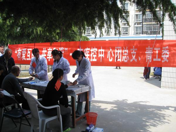 2009年5月4日,徐州市疾病预防控制中心团总支、青工委组织团员青年到奎山社区敬老院进行了一次帮扶活动,团员青年给老人们送去了15个品种90多盒的常备药物,包括感冒药、咳嗽药、眼药水、皮炎平、丹参片等基础非处方药,进行了50余人的血压和血糖测定,针对检查发现的高血压和糖尿病等常见老龄疾病,大家又从生活方式、医药调节等方面给老人们做了详细的解释,并送给老人们精美的健康促进图书、画册50本,还有关于膳食营养、高血压、肠道和呼吸道传染病的防治知识手册100多份。在活动中老人们争先恐后的想了解自身的健康状况,并不时询问,大家都给予耐心的解答。通过这次短暂的帮扶活动,让部分孤寡老人感受到生活在“科学发展、和谐共存”的人文社会里,人与人之间的友爱互助、关心帮扶无处不在;团员青年们也用这次具体的行动来纪念5.4运动90周年,并在活动中深切感受到“健康所系、性命相托”的医学使命,在新的历史时期更加需要每一个青年人的努力,最终创建出“健康平安、和谐共享”的社会环境。
