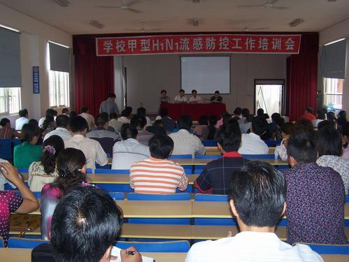 培训会上由县疾控中心专业人员通报了目前国内外甲型H1N1流感疫情动态,并对如何做好学校及托幼机构的防控工作进行了详细的讲解,要求各学校应做到:1、成立防控组织;2、认真做好学校教职员工的防控知识培训;3、认真落实好学校晨检和缺课制度;4、及时、准确向相关部门报告甲型H1N1流感样病例。