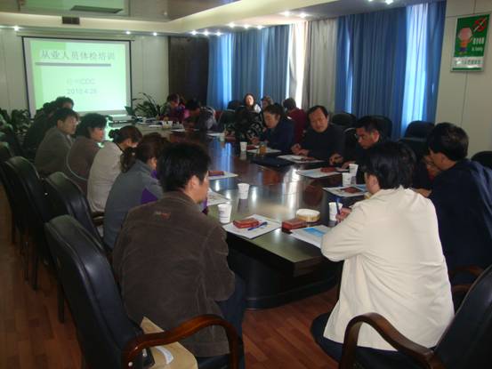 根据卫生部、人力资源和社会保障部《关于进一步规范入学和就业体检项目维护乙肝表面抗原携带者入学和就业权利的通知》和卫生部新修改的《公共场所卫生管理条例实施细则》的有关规定,为了进一步规范从业人员健康体检工作,市疾控中心于2010年4月28日举办了关于规范性开展从业人员健康体检工作的培训班,参加人员为各县(市)疾控中心体检科长、相关科室负责人及各体检机构管理人员和实验室技术人员,共计30余人。