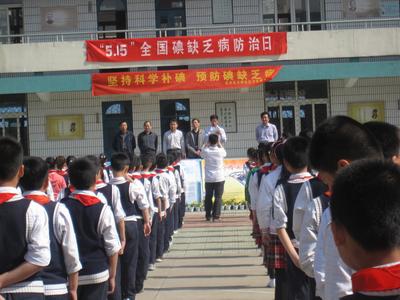 5月13日,市地防办、市卫生局、市盐务管理局、市疾控中心、市健康教育所、云龙区卫生局、云龙区疾控中心等部门联合进学校、进社区进行碘缺乏病防治宣传。各部门领导和专家先来到云龙区云兴小学宣传,市地方病办公室张洪永处长向学生讲了“防治碘缺乏病日”宣传的重要意义和我市碘缺乏病防治现状,市疾病预防控制中心专家介绍了如何防治碘缺乏病,市盐务局副局长孙学新、市疾控中心副主任余加席、云龙区卫生局副局长申涛等领导向学校食堂赠送了碘盐,最后组织学生参观了宣传画板,向学生发放了碘缺乏病知识宣传材料。宣传队伍又来到云龙区利群社区,通过悬挂横幅,摆放宣传板,现场授课、现场提问、群众咨询等形式,向群众宣传碘缺乏病危害和如何预防碘缺乏病。徐州市电视台、徐州日报、都市晨报、彭城晚报等新闻媒体对宣传工作进行跟踪报道,并采访了市疾控和市盐务的有关专家。