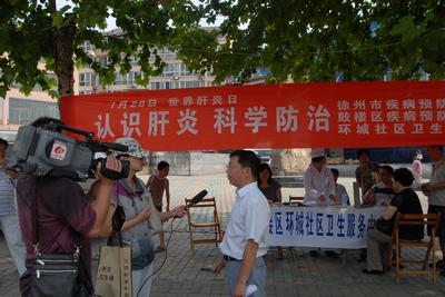 今年7月28日是世界卫生组织确定的首个“世界肝炎日”, 我国的宣传主题是“认识肝炎,科学防治”。为规范肝炎防治宣传,进一步推动防治工作开展,保证肝炎防治宣传活动的严肃性、权威性和正面效果,市卫生局及时转发卫生部办公厅的通知,要求各地做好宣传活动。按照要求,徐州市疾控中心、鼓楼区疾控中心、环城社区卫生服务中心共同在环城社区开展“世界肝炎日”宣传活动。